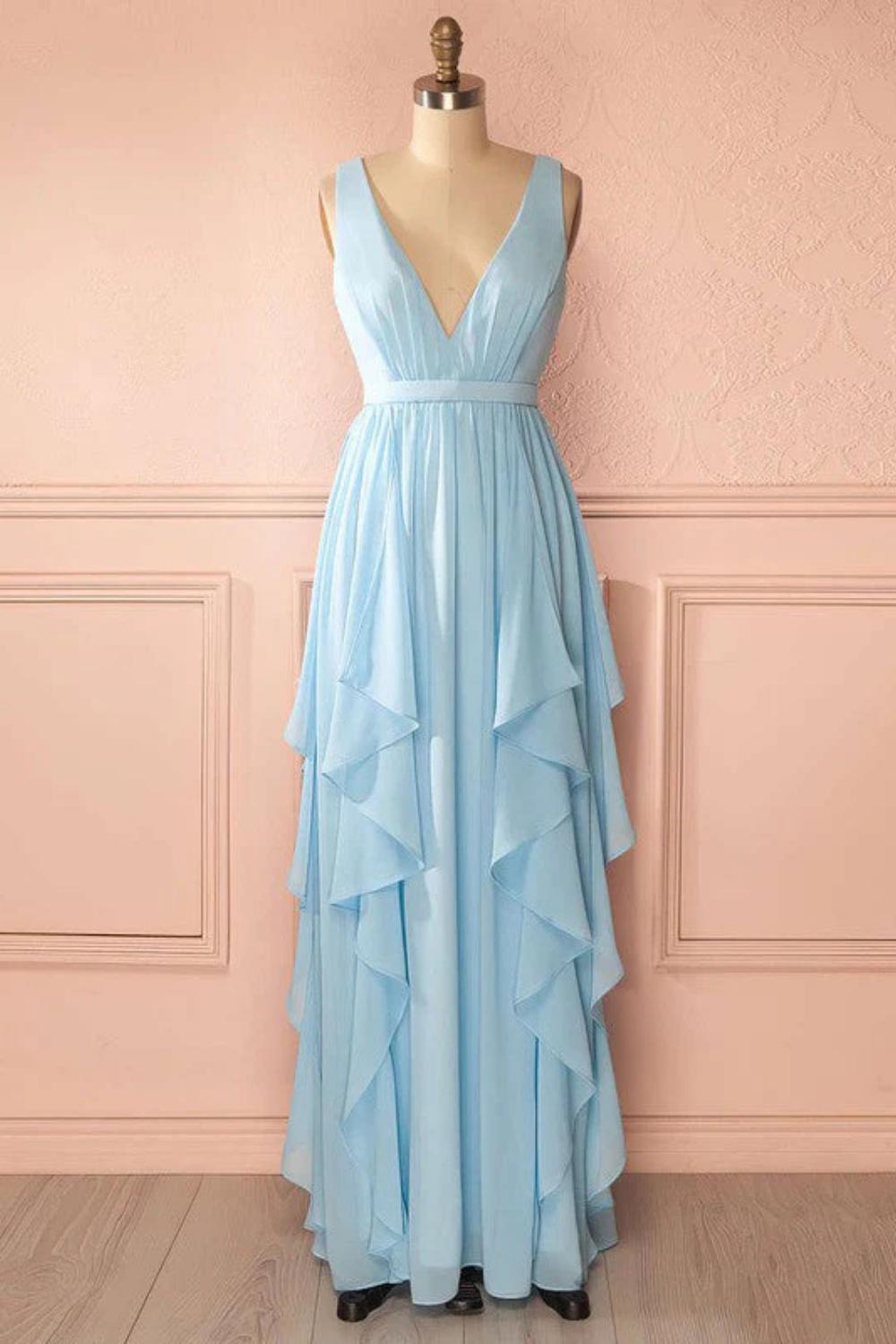 Beautiful A-line V-neck Chiffon Floor-length Formal Dress with Ribbons