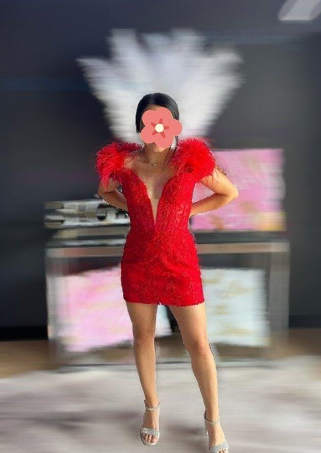The off-the-shoulder style and feather details made the dress so unique. I wore it in red and felt absolutely glamorous all night.