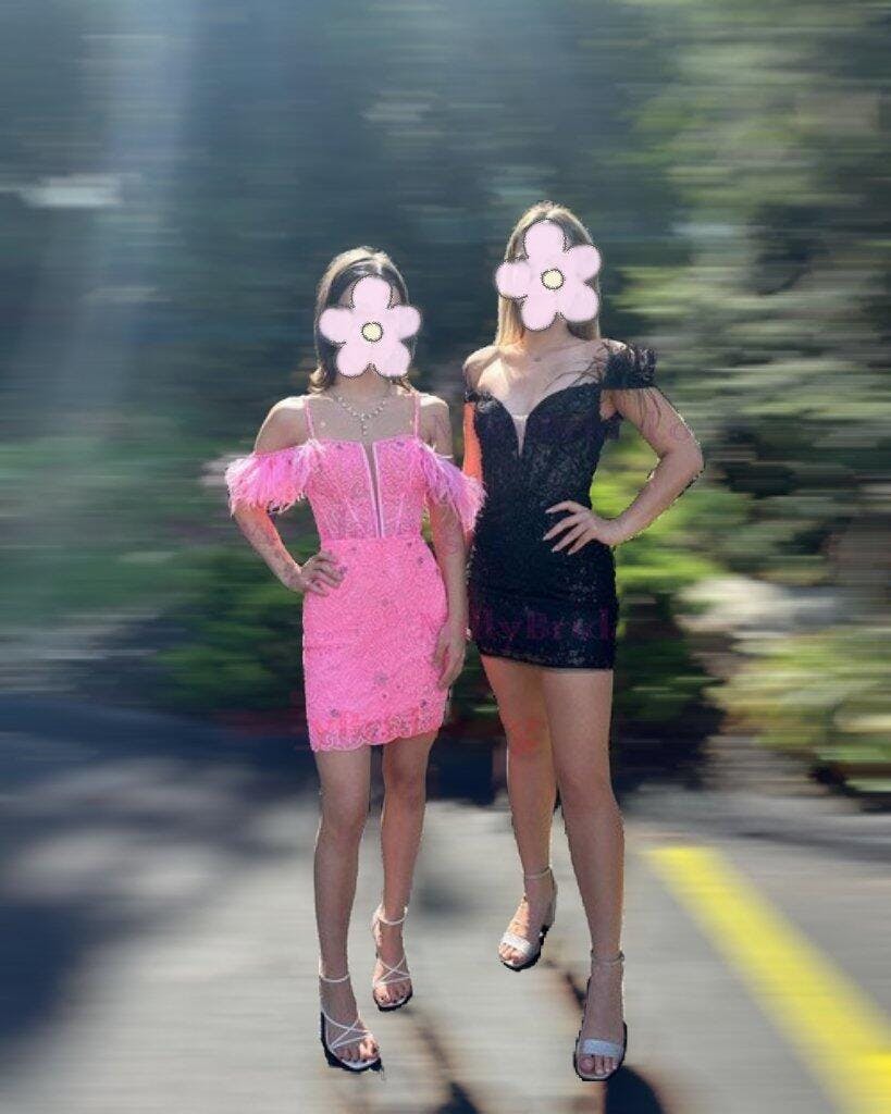 I wore the black one and my friend had a matching style. The feathers made it so fun, and we had the best time together at homecoming.