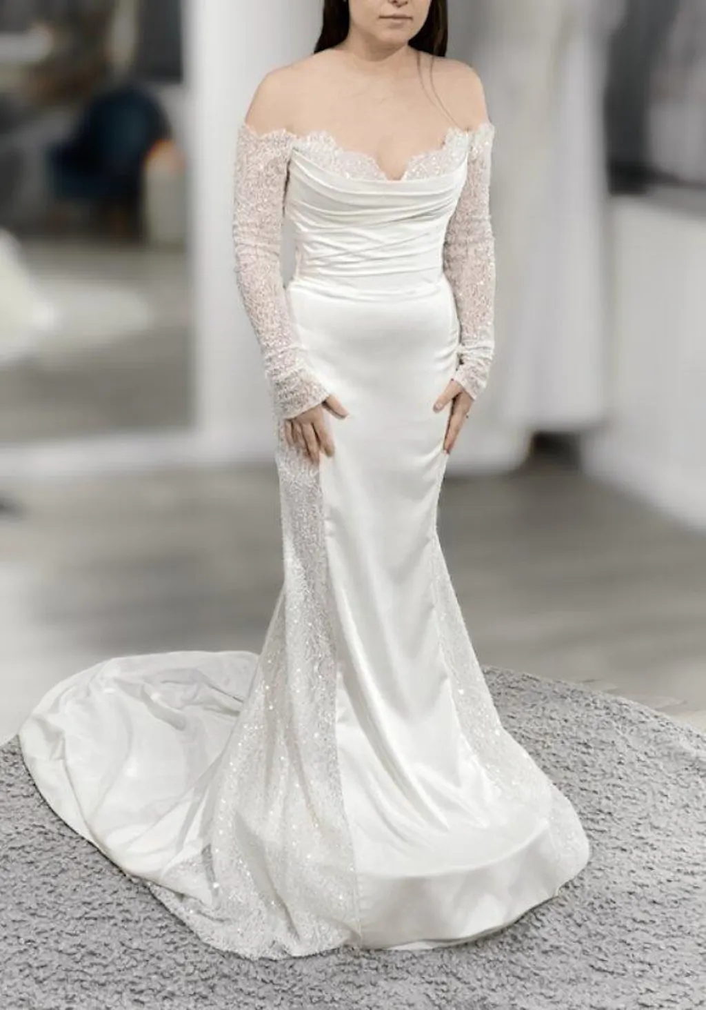 When I tried on this boho mermaid wedding dress at home, it fit me perfectly! I loved it so much that I immediately filmed a video to share with my family and friends. The lace detail and mermaid silhouette were absolutely gorgeous.