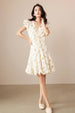 Cute Ivory Cap Sleeves V-neck Short Lace Dresses bring a delicate charm with intricate lace details and a flattering V-neckline. The cap sleeves add a touch of grace, making it ideal for parties, weddings, or special occasions.