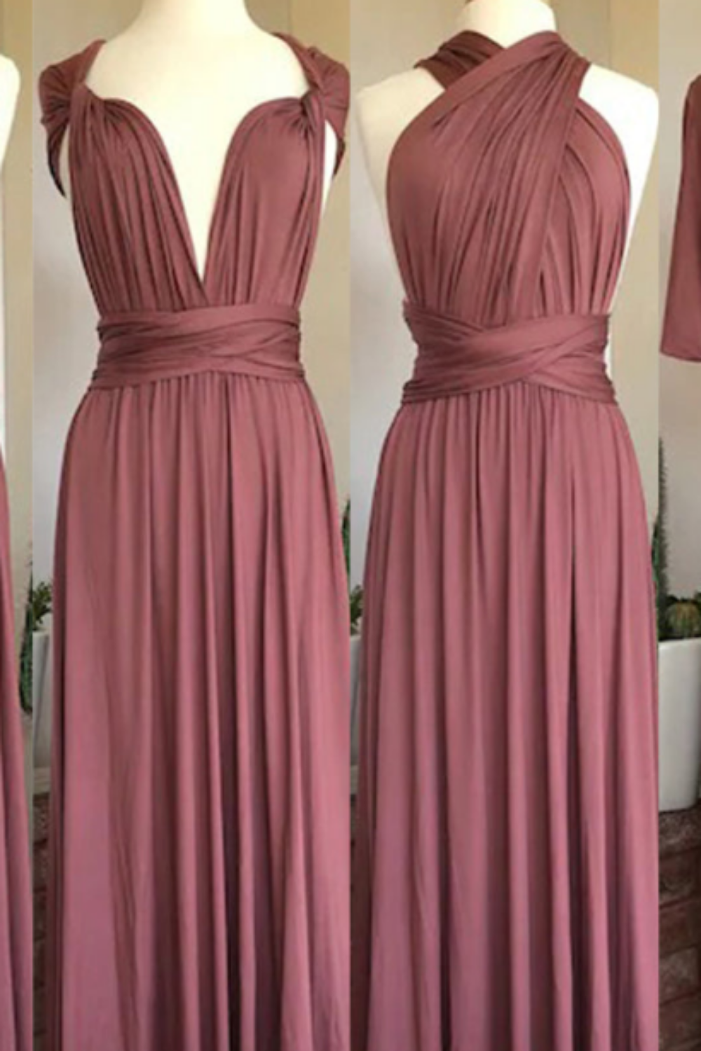 Dusty Pink Multiway Ruffles A-Line Bridesmaid Dresses Long-27dress
