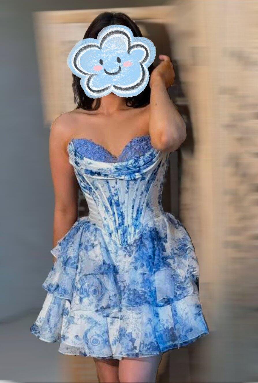 Strapless Corset Short Floral Homecoming Dresses blend vintage charm with modern flair. The strapless design highlights your shoulders, while the corset bodice cinches the waist for a flattering silhouette. Adorned with vibrant floral prints, the short skirt adds a playful touch, perfect for dancing. Made with lightweight fabric, it ensures comfort all night. Ideal for homecoming, this dress balances elegance and fun effortlessly.