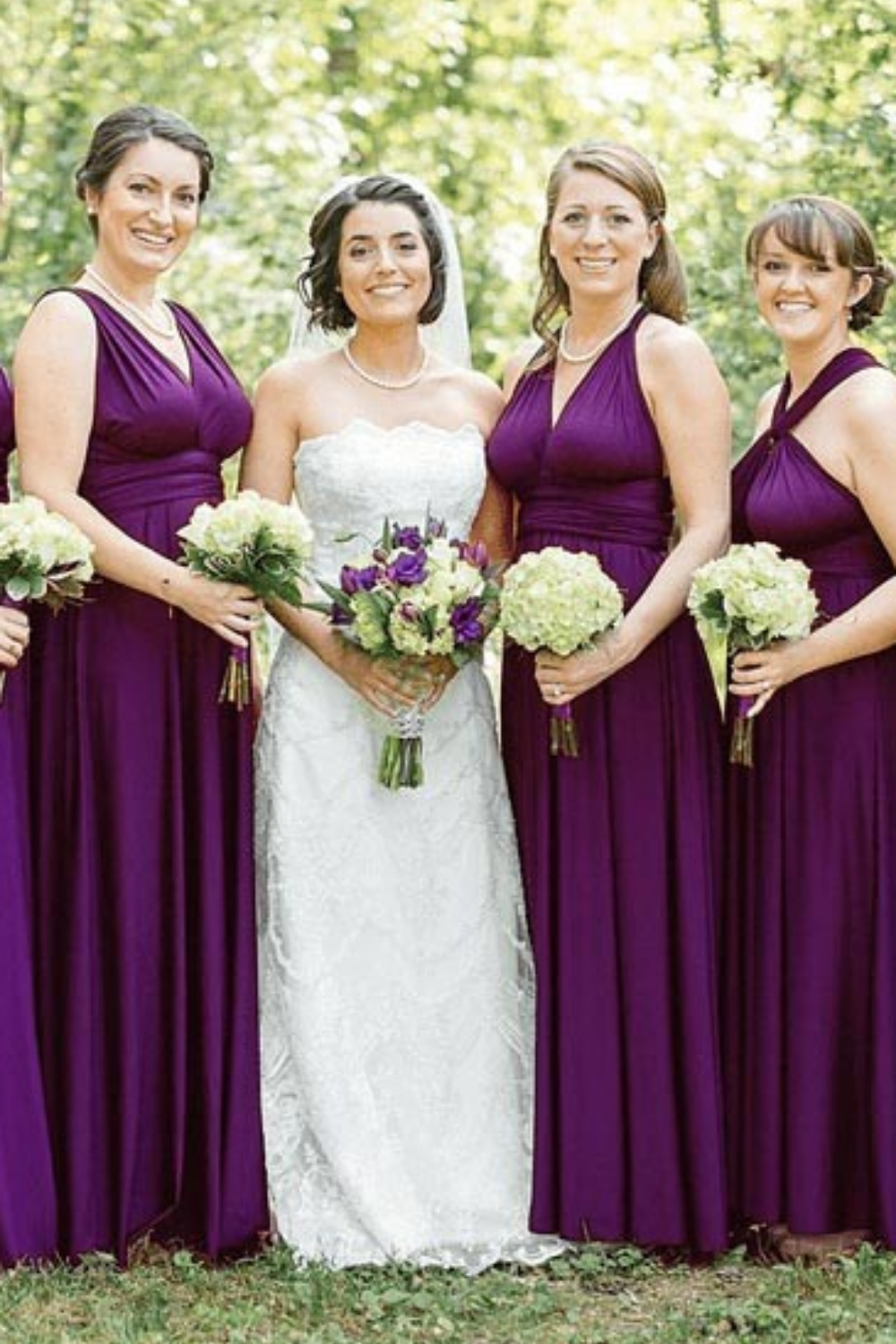 This versatile bridesmaid dress offers endless style possibilities with its multiway infinity design. The simple and elegant sleeveless V-neck adds a touch of sophistication to any bridal party. Made with a deep purple shade, this dress is sure to complement any skin tone. Perfect for a chic and timeless look.