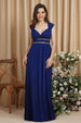 V-Neck A Line Off The Shoulder Chiffon Long Formal Dress combines elegance and femininity. The flowing chiffon fabric drapes beautifully, creating a graceful silhouette, while the off-the-shoulder design adds a touch of romance. Perfect for bridesmaids looking for a stylish, flattering dress for any wedding.